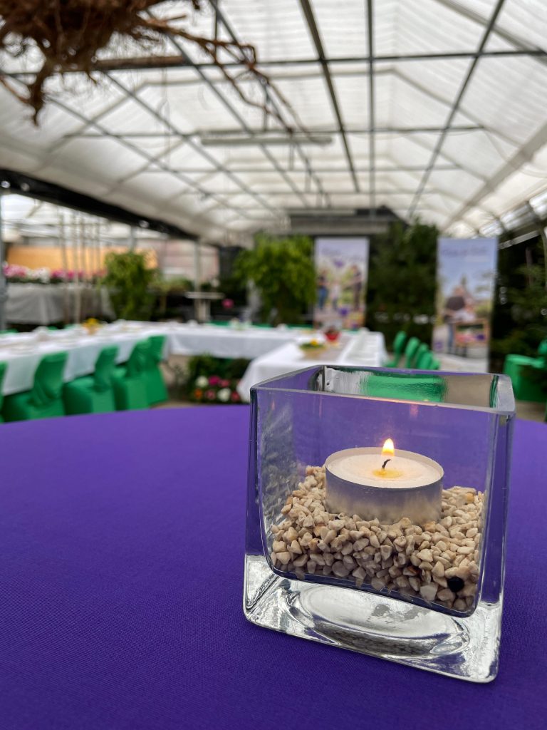 Im Event-Gewächshaus der Gärtnerei bieten wir Ihnen einen geschützten Rahmen für Trauerfeiern mit Bewirtung, Floristik und liebevoll gedecktem Tisch.