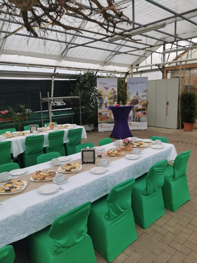 Mit dem Trauercafé im Event-Gewächshaus der Gärtnerei Tröltzsch schaffen wir einen Ort für Trost, Erinnerung und Gemeinschaft. Wir freuen uns auf Ihre Anfrage und beraten Sie gerne persönlich zu Ablauf, Menüauswahl und Dekoration.
