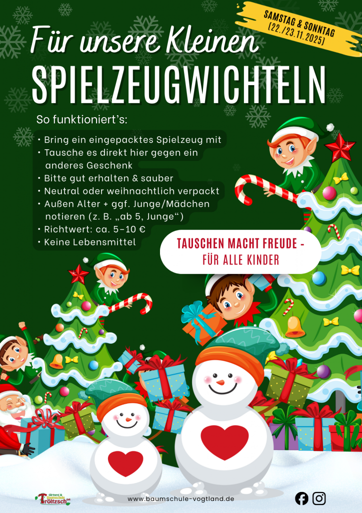 Dieses Jahr steht in unserer Gärtnerei wieder das Spielzeugwichteln für Kinder bereit. An unserer festlich geschmückten Olive können unsere kleinen Besucher ein eingepacktes Spielzeug ablegen und sich im Gegenzug ein anderes Geschenk aussuchen.